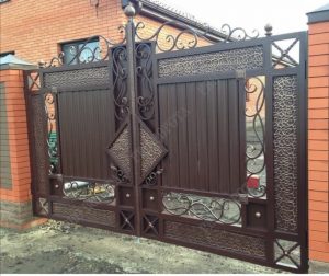 Распашные ворота с элементами ковки (металл)