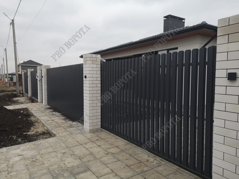 Откатные ворота, евроштакетник