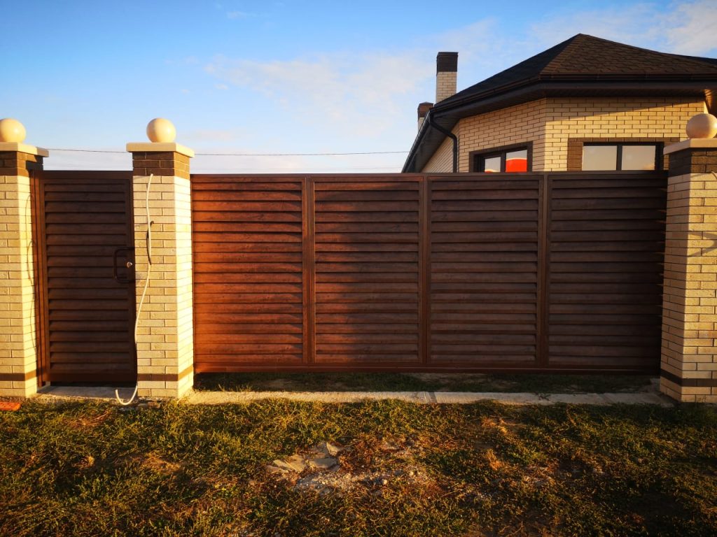 Сдвижные ворота с заполнением «жалюзи» – стиль, надёжность и приватность!
