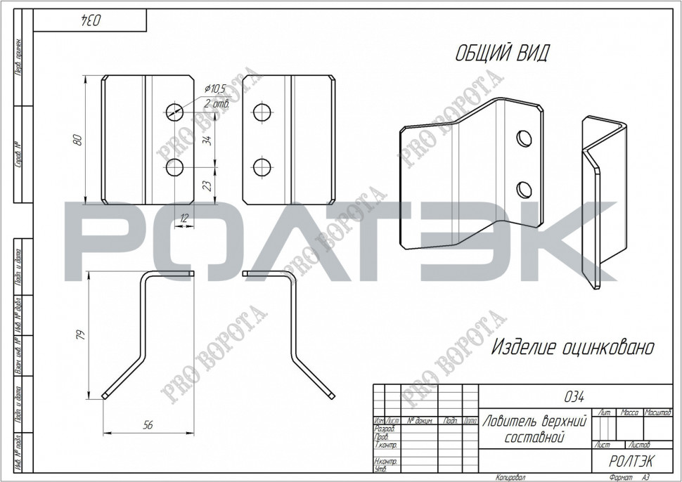 Ловитель верхний составной предназначен для удержания верхнего края створки ворот в закрытом состоянии. Подходит при любой толщине створки. Для регулировки положения предусмотрены пазы, ловитель не требуется сверлить при монтаже.