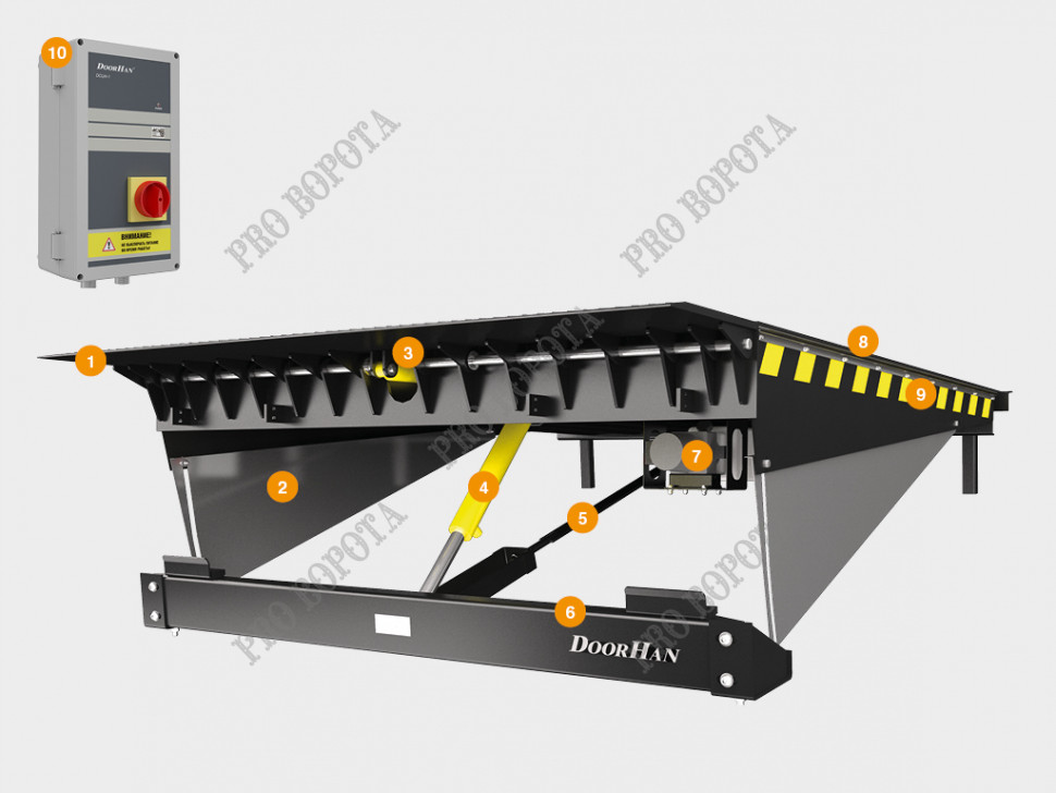 Электрогидравлическая платформа с поворотной аппарелью консольного типа серии DLHHC является типовым устройством для оборудования перегрузочного дока и используется для осуществления доступа из зоны склада в кузов автомобиля. При запуске платформа поднимается, и аппарель, поворачиваясь, открывается. Платформа опускается до тех пор, пока не достигнет пола кузова автомобиля. По окончании работ платформа возвращается в исходное положение