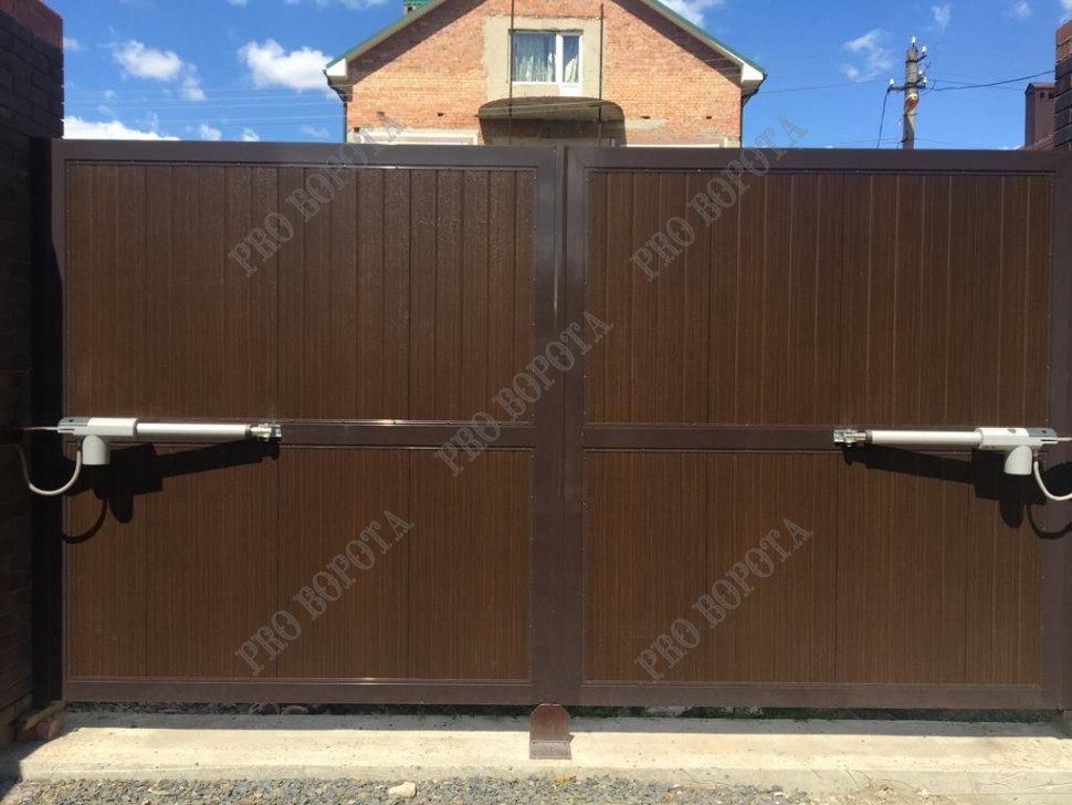 Простая конструкция распашных ворот в алюминиевой раме позволяет быть уверенным в надежности и крепости конструкции, ведь легкость установки, эксплуатации и ухода не оставляет сомнений. Грамотная установка позволит вам пользоваться въездными воротами долгие годы без необходимости ремонта. Бесшумное движение полотна ворот также является важным преимуществом. Распашные ворота Дорхан могут быть изготовлены любых размеров и окрашены в самые разные цвета. При необходимости можно установить калитку и автоматическую систему открывания и закрывания створок. Распашные конструкции являются наиболее популярной моделью среди покупателей, ведь они всегда обходятся не так дорого, как прочие варианты. Качество и добротность изготовления не оставляют сомнений. Покупая изделия этого производителя, вы можете не сомневаться, что они будут служить вам очень долго и не повлекут хлопот и дополнительных денежных затрат на ремонт. Ворота в заводском исполнении это качество, долговечность и детально разработанный конструктив, согласно ГОСТу.