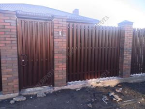 Сдвижные ворота ,евроштакетник, шахматное заполнение