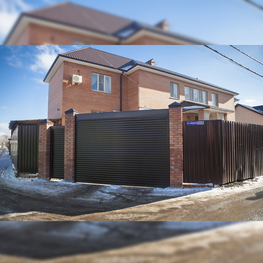 Монтаж встроенный,электропривод с аварийным открыванием, антиветер, 4 пульта, калитка с механическим замком
