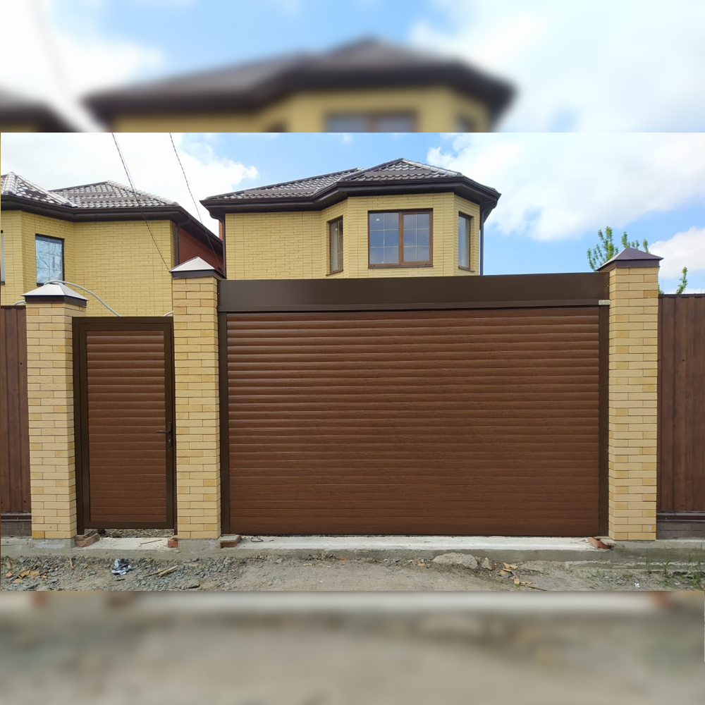 Монтаж встроенный,электропривод с аварийным открыванием, антиветер, 4 пульта, калитка с механическим замком