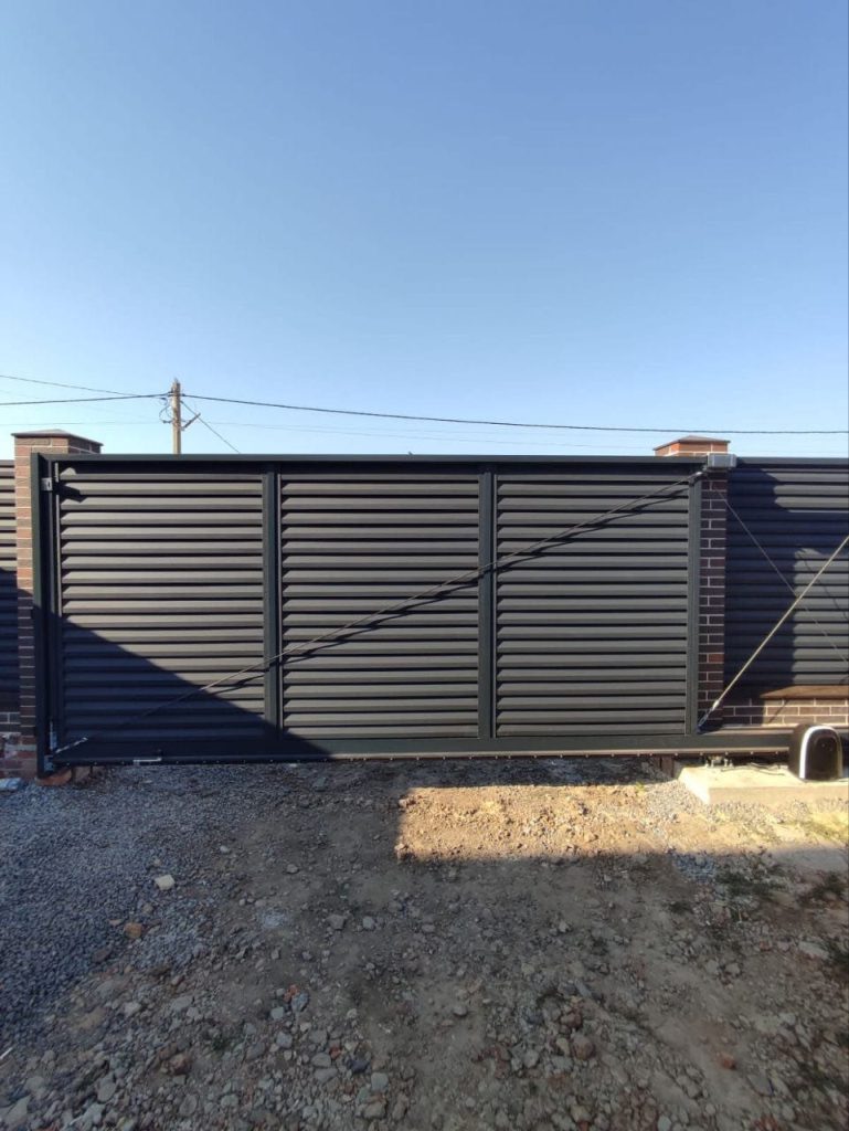 Сдвижные ворота с заполнением «жалюзи» – стиль, надёжность и приватность!