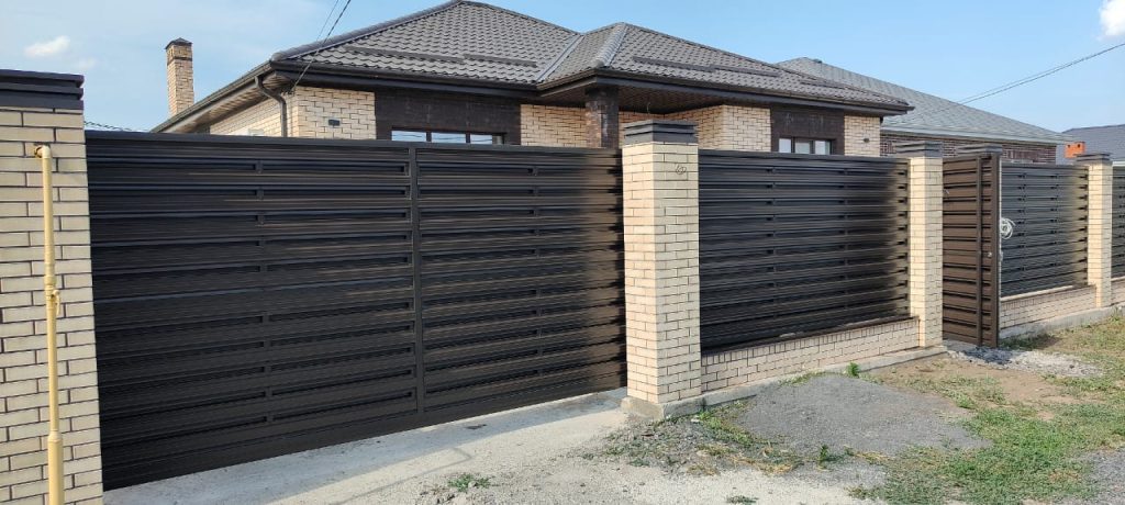 - Защита от посторонних глаз – наклонные ламели скрывают происходящее во дворе, сохраняя приватность.